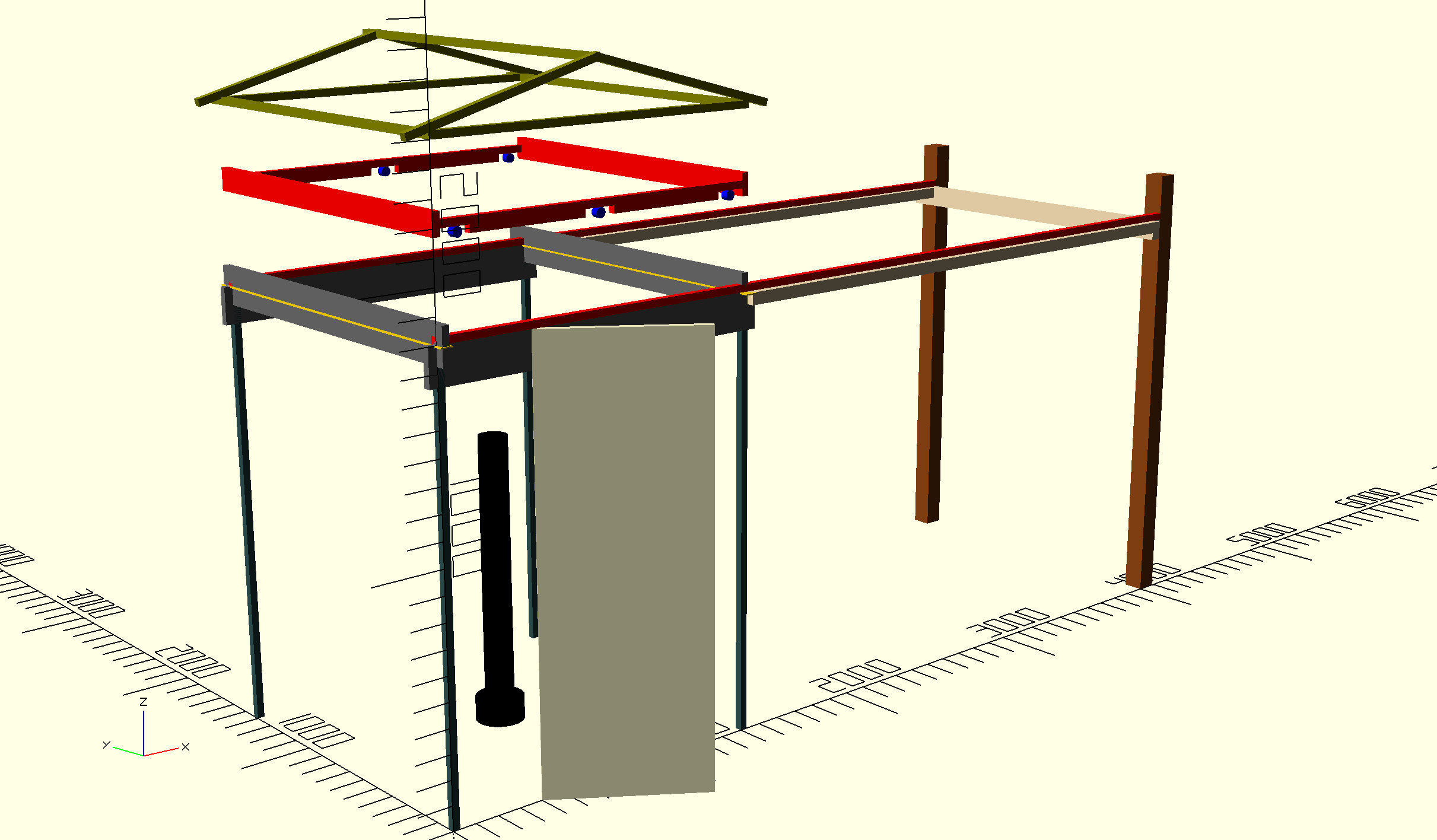 verlängern und über eine Holz-Stützen-Konstruktion stbilisieren. Damit wird das Dach auf den Schienen beweglich